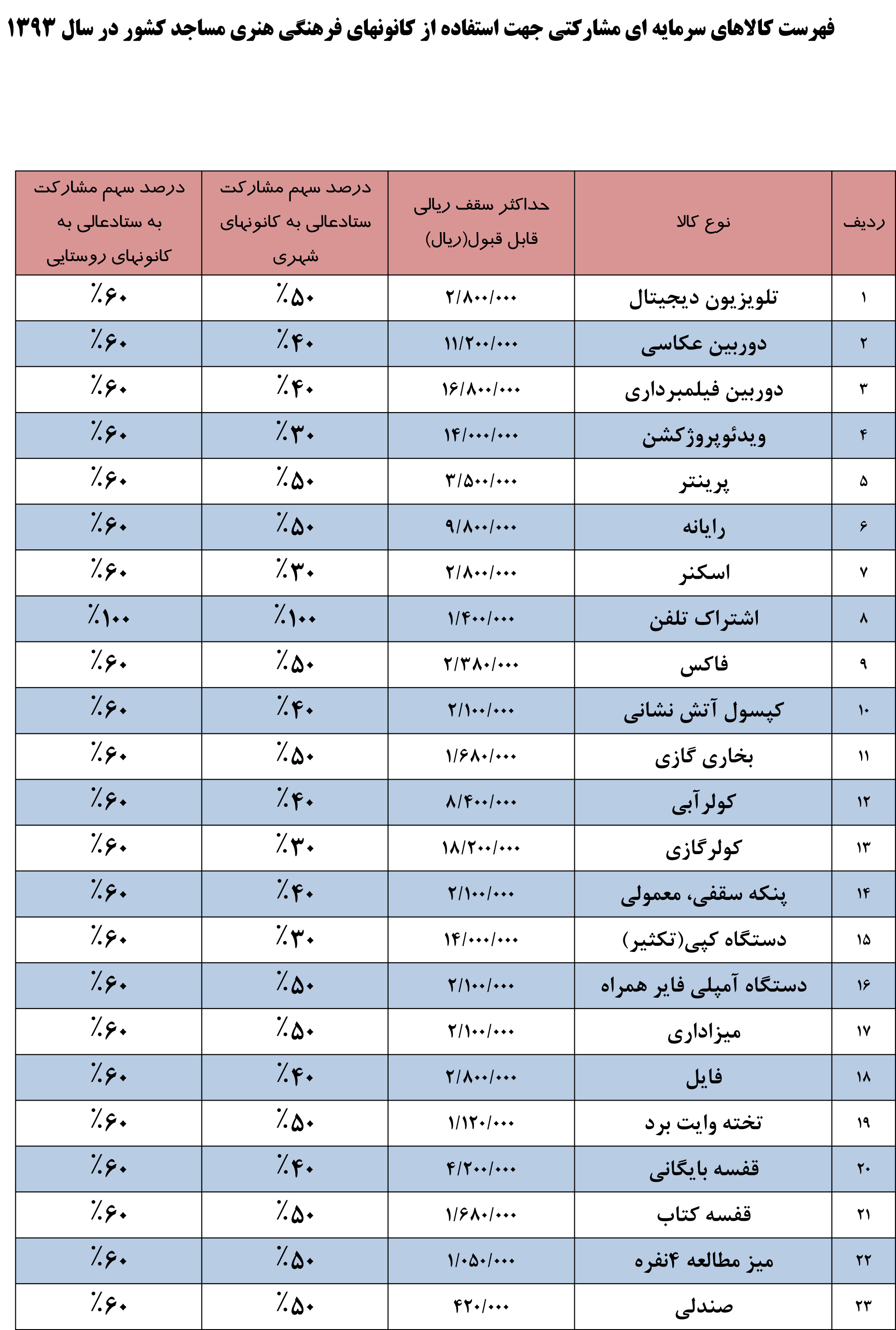 لیست اقلام مشارکتی جهت استفاده کانون ها