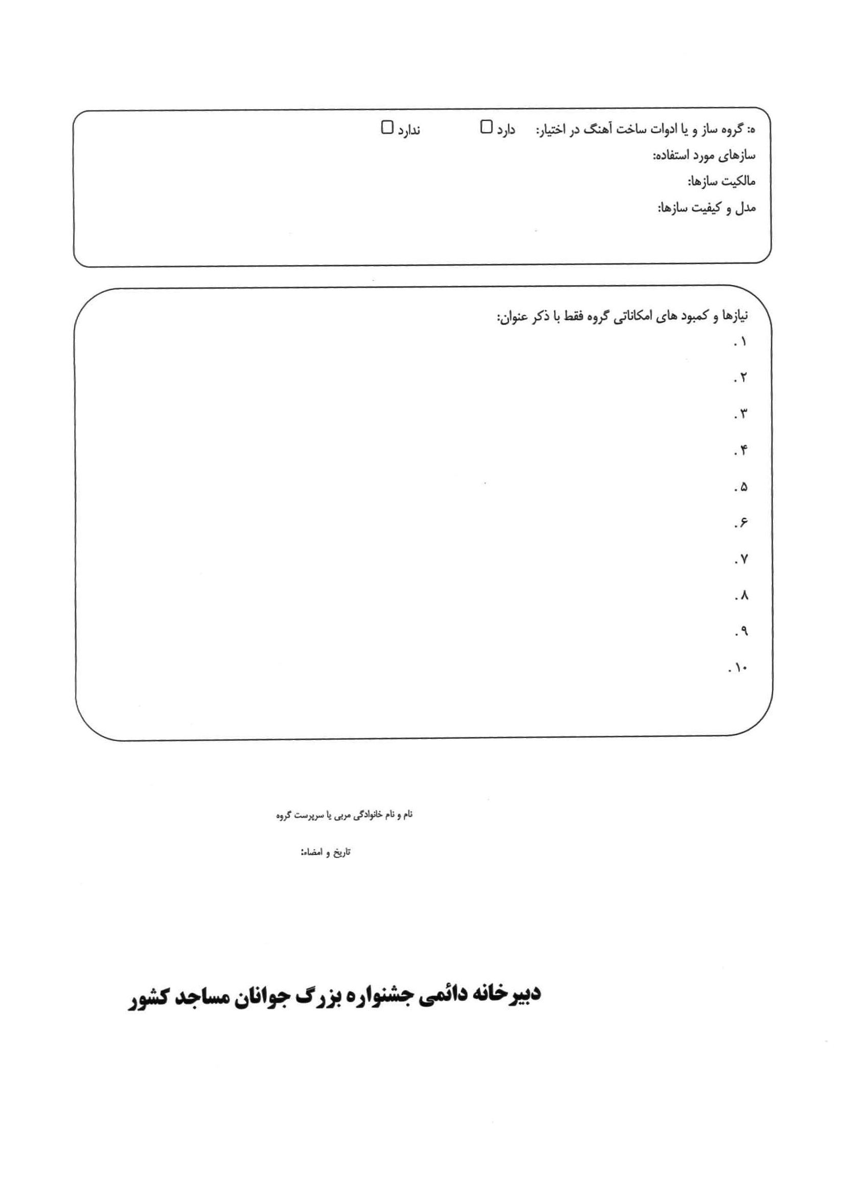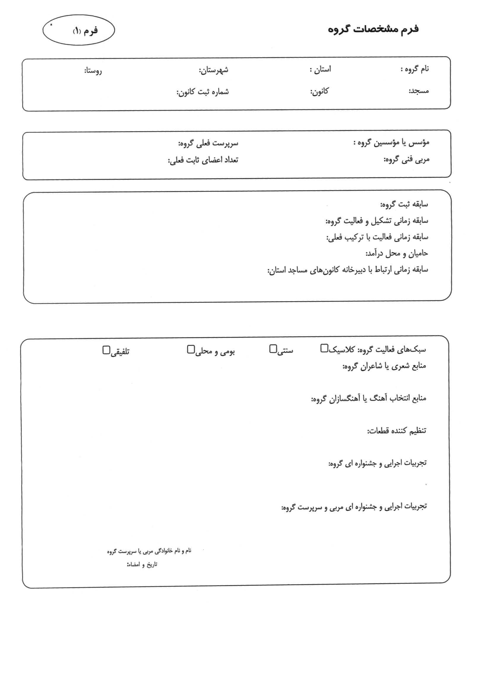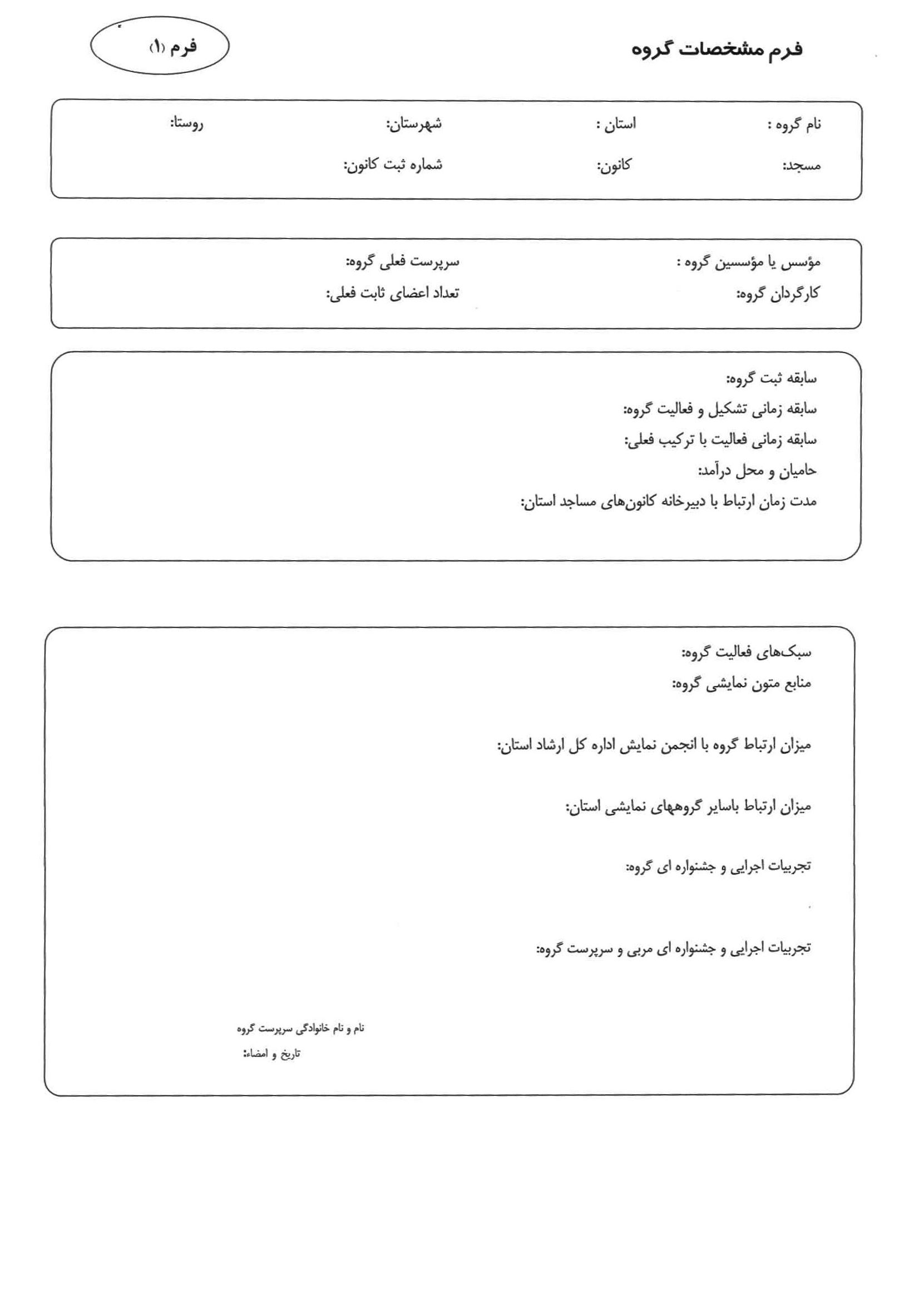 دریافت فرم 5 برگی ثبت و ساماندهی گروه های نمایش کانون های مساجد: