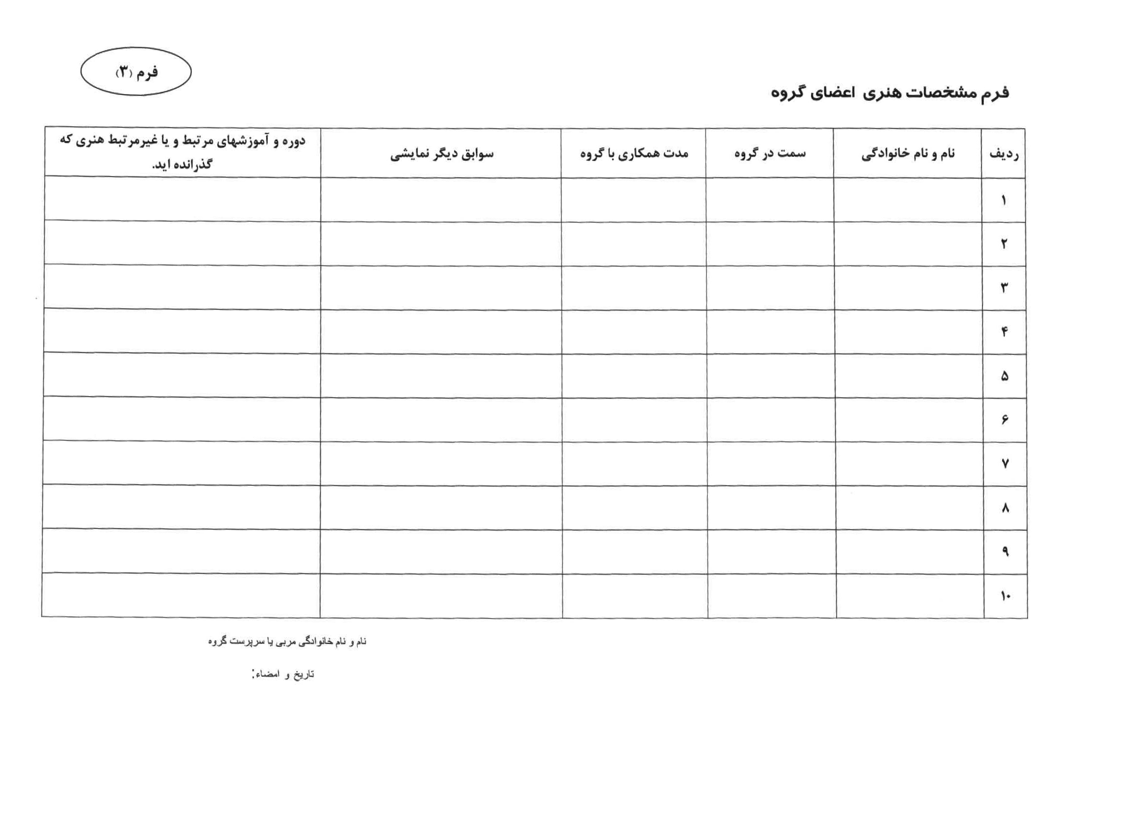از کانون های فرهنگی هنری که دارای گروه نمایش می باشد تقاضا می شود پس از دریافت فرم های زیر آنها را تکمیل نموده و به دبیرخانه استان تحویل نمایند.